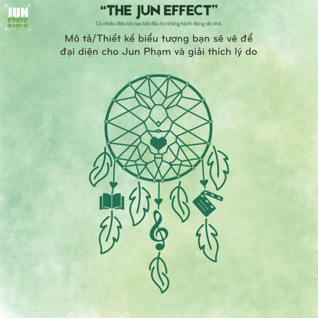 Tôi cứ nghĩ mãi về việc, qua những trang sách của Jun, tôi đã học được cách lắng nghe và bảo vệ đứa bé bên trong mình ra sao. Và rồi, trong đêm trằn trọc, ý tưởng về chiếc dreamcatcher bất chợt xuất hiện. Khi vẽ nháp những đường nét đầu tiên, tôi biết mình đã tìm thấy biểu tượng hoàn hảo, gói trọn tinh thần của Jun qua lăng kính cá nhân tôi luôn mang: một người anh lớn dịu dàng xuất hiện khi thế giới nhỏ của tôi đang đầy ắp những bão giông.