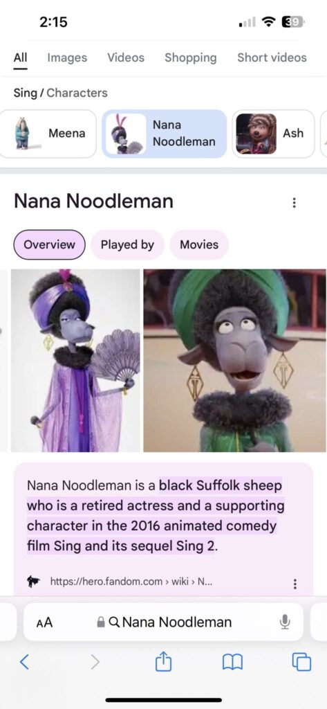 Không biết mọi người đã coi phim hoạt hình “Sing” chưa, cơ mà khi nghe đến chủ đề trên, một hình ảnh nhân vật phụ khả ái đã chẳng chần chừ mà xuất hiện ngay trong đầu mình. Mình nghĩ đây là nhân vật làm mình liên tưởng đến Jun Phạm. Bật mí, mình đang nói đến một bà cừu quý tộc mang tên Nana Noodleman.